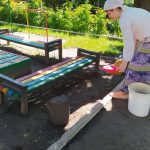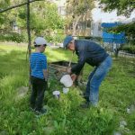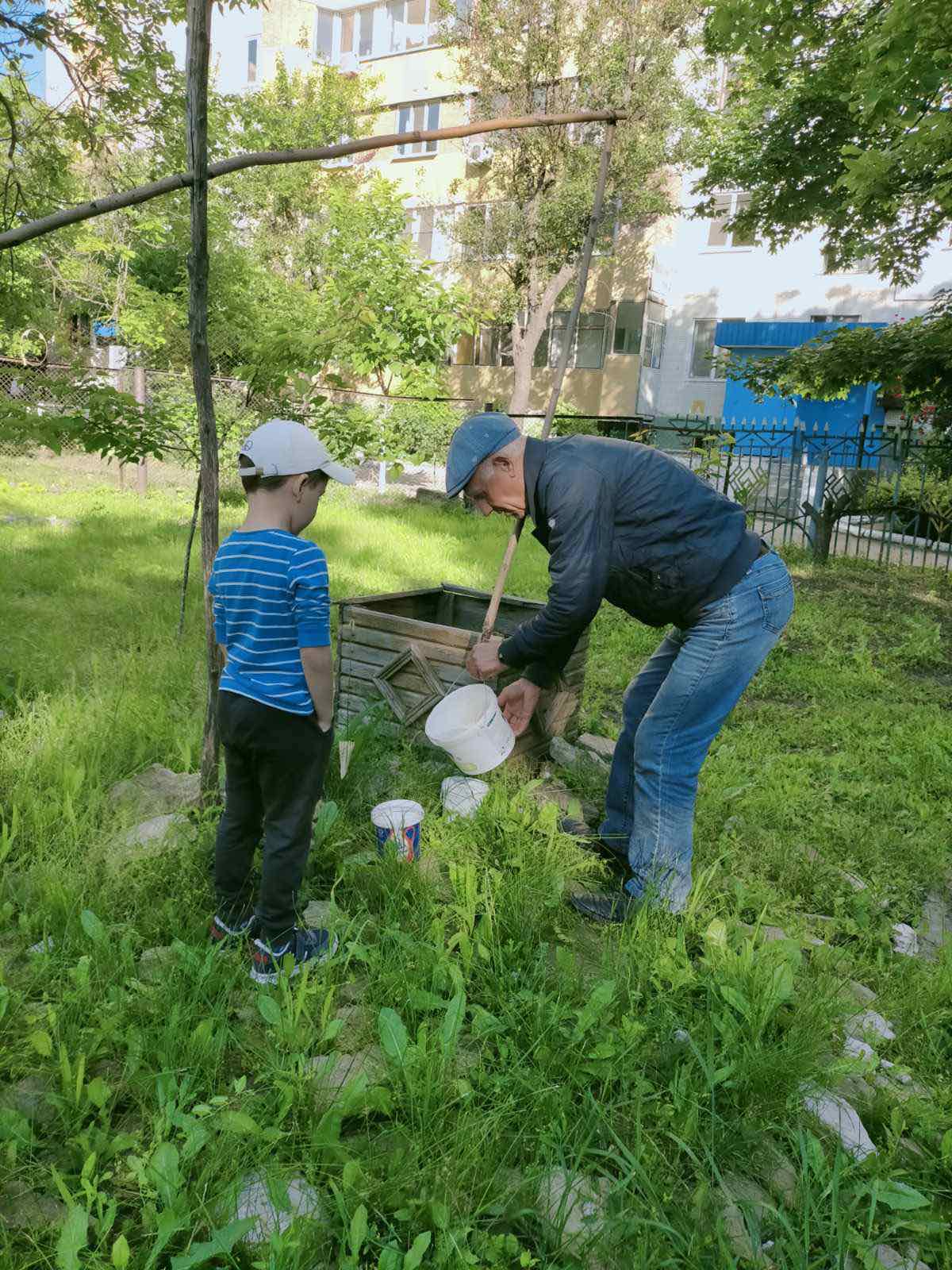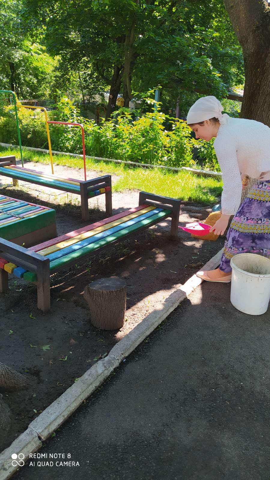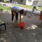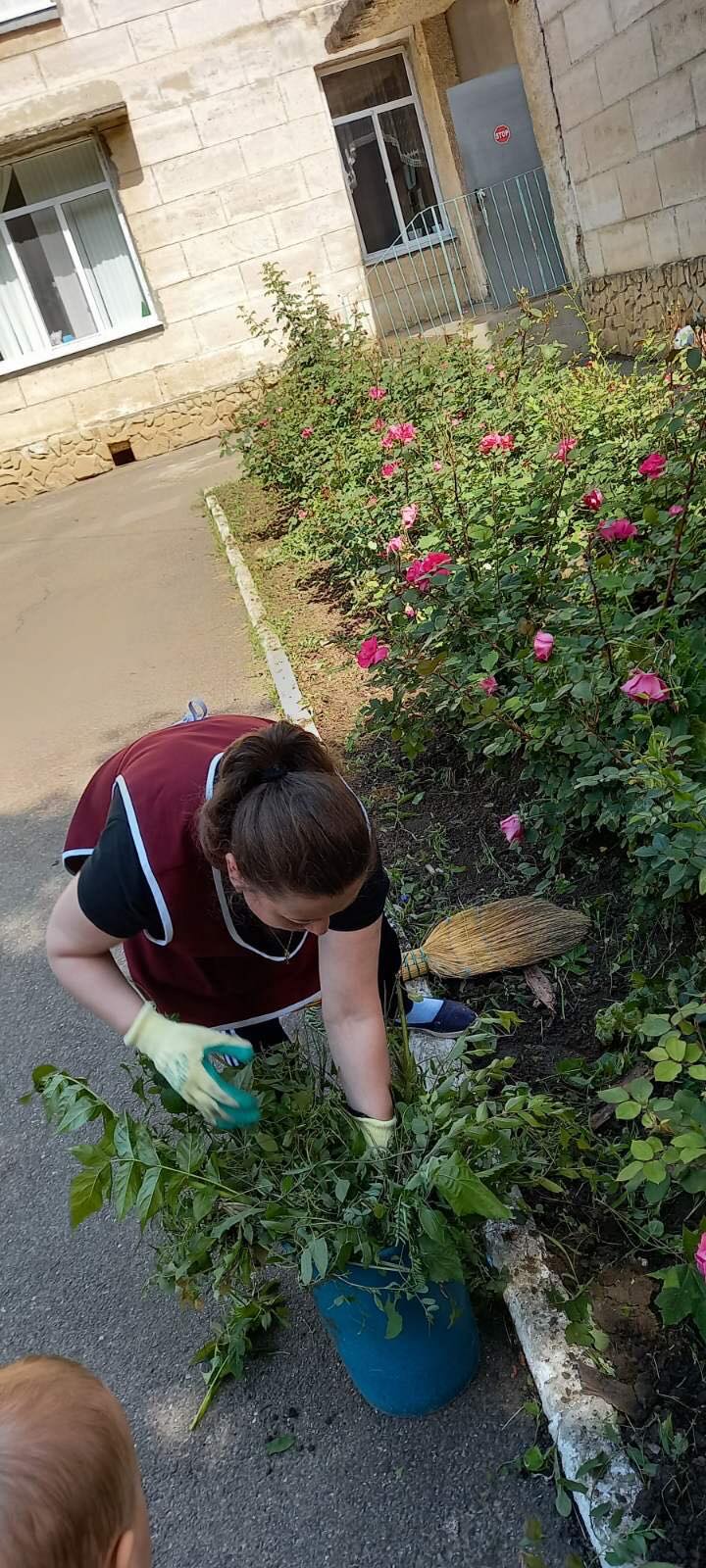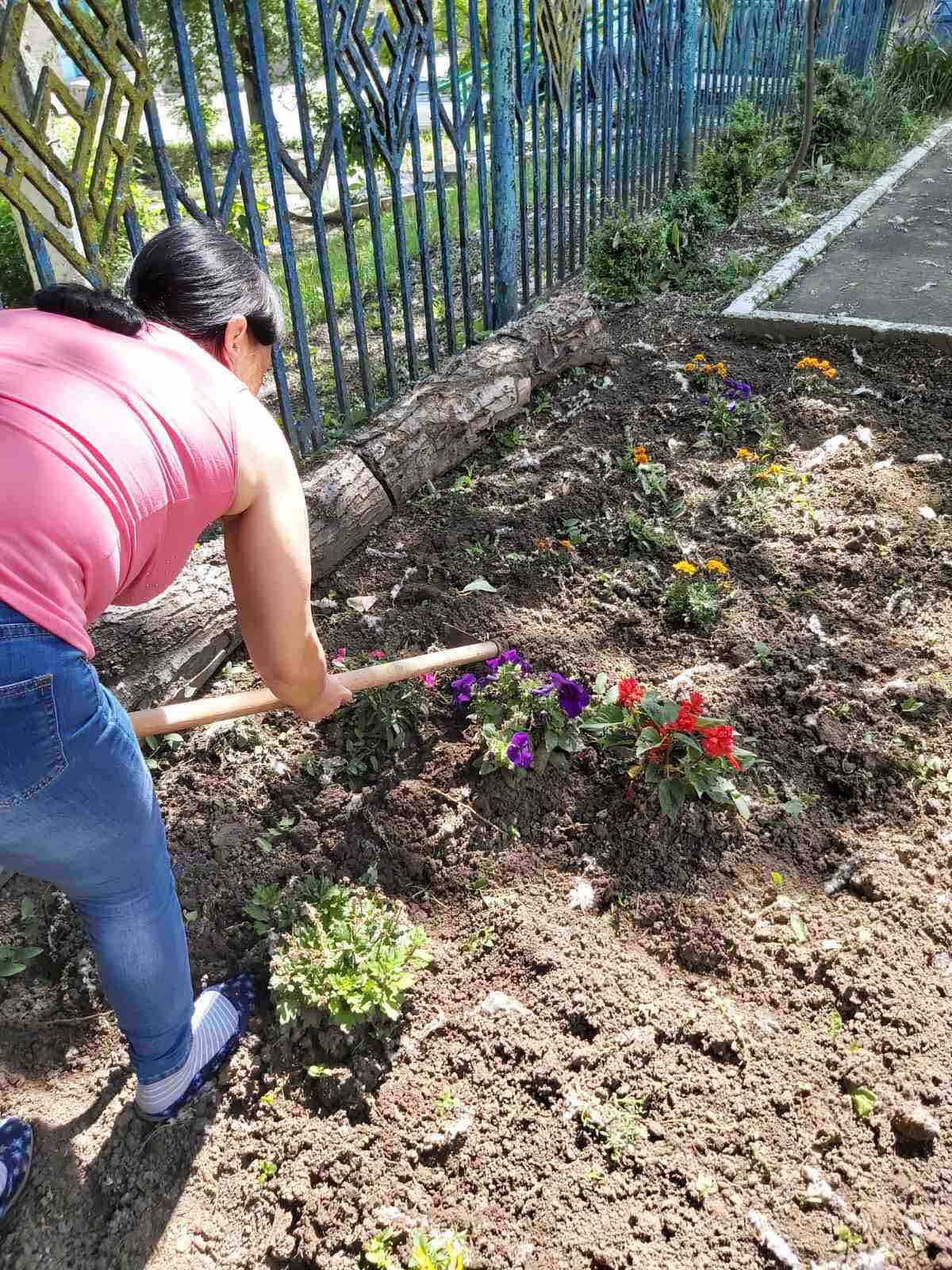 Astăzi este vineri — o zi frumoasă de vară. După zilele ploioase anterioare angajații instituției preșcolare fac ordine pe terenul aferent/adiacent al instituției de învățământ. Este o lecție de curățenie sanitară și atitudine grijulie față de natură care ne înconjoară.