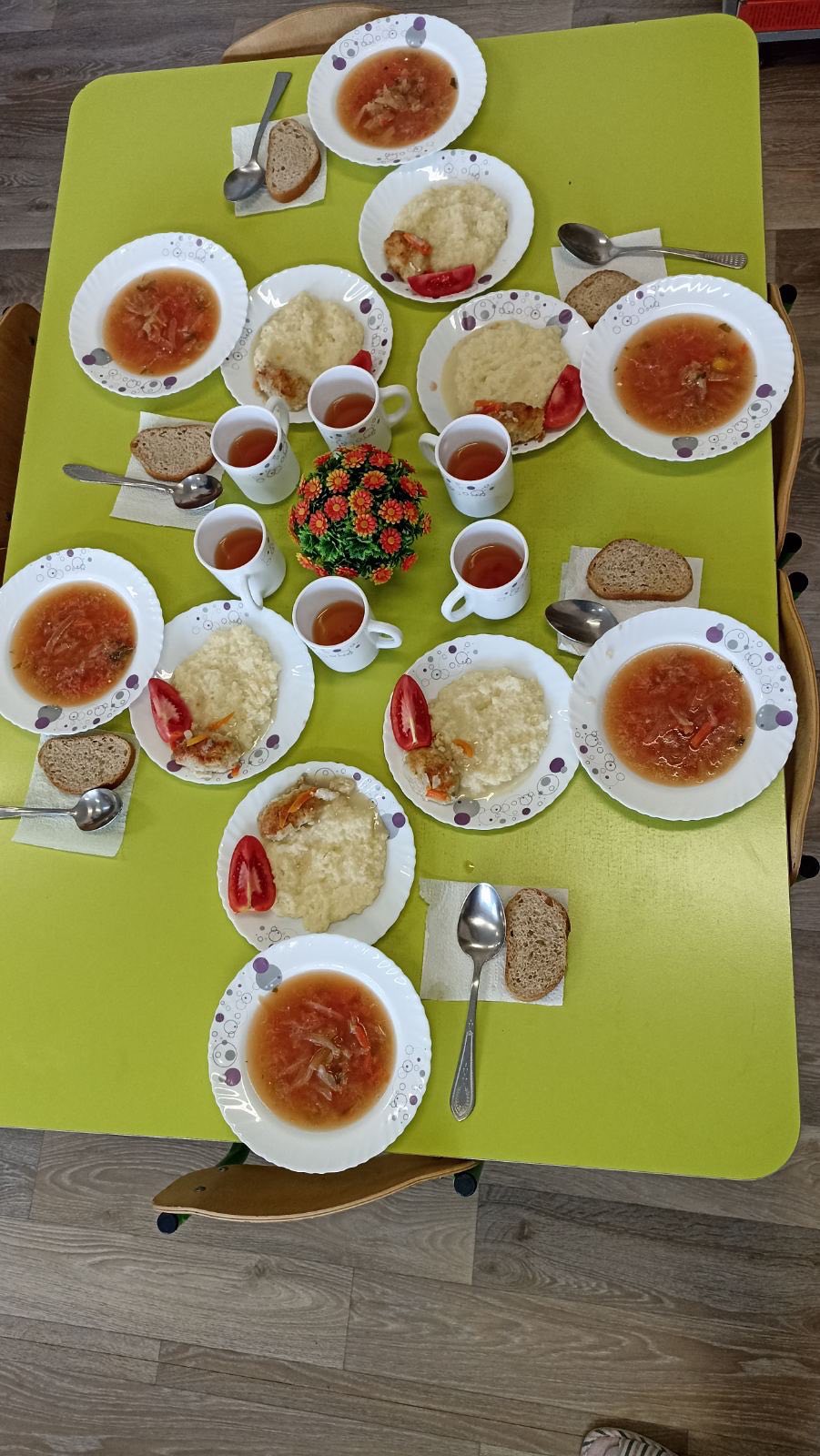 Aici zilnic se monitorizează respectarea Meniului — model pentru alimentația sănătoasă a copiilor. Bucătarii cu multă dragoste prepară din produsele livrate de OE bucate gustoase și pline de vitamine. Copii cu mare poftă servesc bucatele gustoase și apetisante.